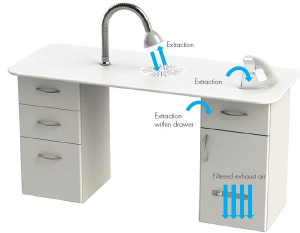 The GVS Nail Station provides a fresher, cleaner and more hygienic environment for clients and technicians with its unique 4-way extraction system.